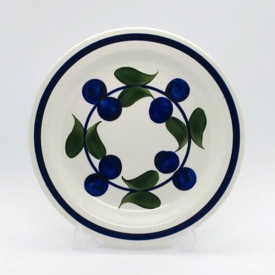 中央の円に沿ってベリーの実と葉が手描きで描かれています。