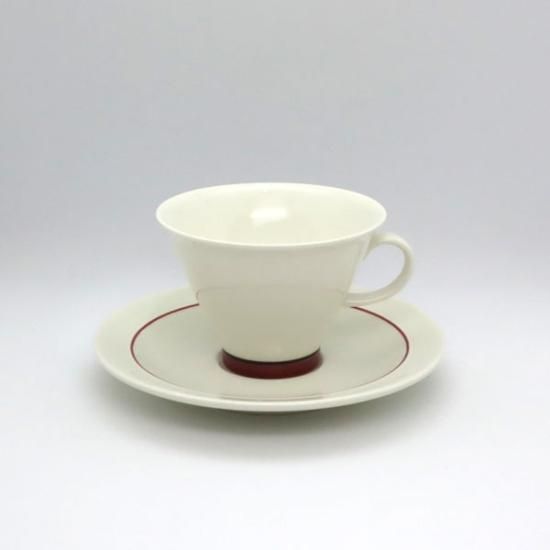 カップ&ソーサーは深みのあるレッドでラインが引かれ、高台はブラックのラインが加わり引き締まった印象。